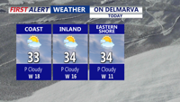 Delmarva stays cold and windy today with highs in the low to mid 30s and gusty northwest winds causing some blowing snow, followed by increasi…