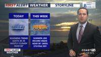 Today will be cool and breezy with highs in the mid 60s inland, and 50s and 60s at the coast.