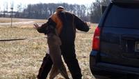 K9's are put through mock situations like this simulated police stop.