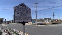 The marker commemorating the Eastern End Of The Transpeninsular Line can be found in the middle of Coastal Highway near 145th St. in Ocean City.