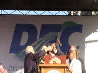 Representatives from each of Sussex County's political parties literally bury a hatchet in a box of sand from Lewes Beach. That, Jones tells CoastTV, is an homage to when Lewes was the county seat. The hatchet burying, just one part of the ceremony post-parade, signifies the end of the political season.
