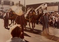 Political opponents ride side-by-side in horse-drawn carriages. In recent years, organizers say it's been hard to attract carriages, so many politicians ride in cars.