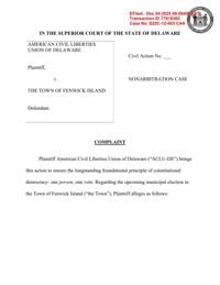 FENWICK ISLAND, Del. - The American Civil Liberties Union of Delaware has filed a lawsuit against the Town of Fenwick Island, challenging its practice of allowing corporations and other artificial entities to vote in municipal elections.