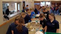 This year, families across Sussex County joined forces to pack over 400 meals. The menu includes traditional favorites like turkey, mashed potatoes, mac and cheese, gravy, and a slice of pie. Each pie is topped with a personalized drawing from local students, adding a heartfelt touch.