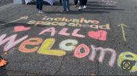 Baltimore Avenue was decorated with chalk drawings with welcoming messages, like this one.