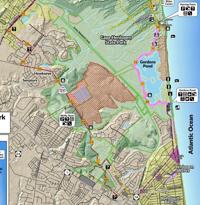 At this time, the bike loop, shown in bright green on park maps, and the Gordons Pond Trail, shown in pink, are open and considered passable. (Cape Henlopen State Park)