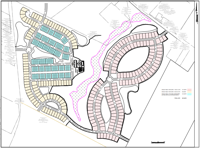 The subdivision includes a mix of 242 single-family homes and 143 townhouses or duplexes, all of which are planned as market-rate ownership units. According to the PLUS application, the development is projected to generate over 3,000 car trips on an average day.