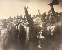 Bill Collick (center) celebrating after a win during the 1985 season (Delaware State University).