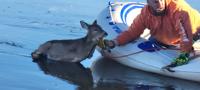 They were able to get the deer and bring it back to the shoreline. The deer was then wrapped in a blanket to make it warm and later released.