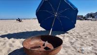 An umbrella and a fire pit, normally that would be a nice fall combo along the coast. However due to the current burn ban, people are having to put a pin in those plans.