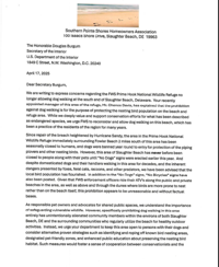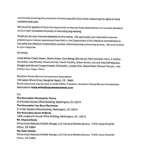 Letter from the Southern Pointe Shores Homeowners Association to the U.S. Department of the Interior.