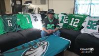 Some fans go all out for their favorite team. Waters owns multiple jerseys, a hat, a cape, and even an Eagles-themed watch.