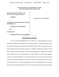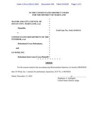 The judge also distinguished the case from others cited by US Wind, including disputes where courts found agency actions were final because they immediately altered legal rights or obligations. In contrast, the ruling states, BOEM has not forced US Wind to change its conduct or exposed it to legal liability. It is a different case from the one that received a ruling earlier in December involving a lawsuit filed by 18 state attorneys general including Delaware's Kathy Jennings and Maryland's Anthony Brown.