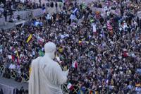 People wave flags in St. Peter’s square after the election of the 267th pontiff of the Roman Catholic Church, at the Vatican, Thursday, May 8, 2025. (AP Photo/Gregorio Borgia)