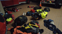 Equipment from county, state, and local crews on the Lewes Fire Department floor ready to go when a call comes in.