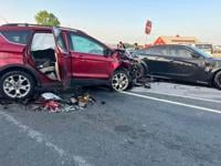 A Honda Odyssey was propelled forward after the initial impact into the back of a Kia Telluride, according to police. Courtesy Bridgeville Volunteer Fire Company.