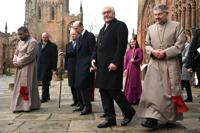 Frank-Walter Steinmeier’s pilgrimage commemorates the Nazi bombing of Coventry on the night of Nov. 14, 1940, which destroyed the 14th-century Gothic cathedral, leaving behind a roofless ruin that stands as a reminder of the ravages of war. At least 568 people were killed and more than half of Coventry’s homes were damaged or destroyed in what was the single most concentrated attack on a British city during the war.