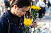 HONG KONG (AP) — A steady stream of people placed bouquets of white roses, carnations, lilies and other flowers Sunday at a makeshift memorial outside the blackened buildings of a Hong Kong apartment complex that went up in flames, killing at least 128 people in one of the city's deadliest blazes.