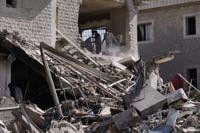 An Associated Press team that visited the scene of the strike Saturday morning saw that the top floor of a three-story building was knocked out.