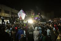 Strands of Ramadan decorations were hung among the ruins. Mohammed Taniri watched the decorations take shape.