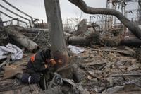 About 60 foreign ambassadors took part in an organized visit Wednesday to a Kyiv thermal power plant that was almost completely destroyed by missiles and drones in the Monday night attack. The plant provided heating to about 500,000 people.