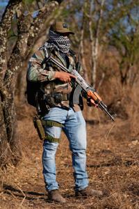 He marches alongside a pack of camouflage-clad men patrolling the rural stretches of Mexico against one of the country's most powerful drug cartels.