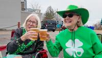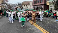 Hundreds of people gathered to watch the celebration, which featured custom-made floats, marching bands, food, drinks and plenty of green as participants made their way through town.