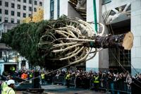 This year's tree is a 75-foot-tall (23-meter-tall) Norway spruce from the upstate town of East Greenbush, a suburb of Albany. After being cut down this week, it made the roughly 150-mile (240-kilometer) journey south on a flatbed truck, drawing curious onlookers along the way.