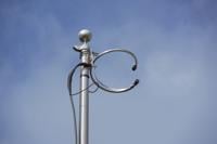 The transmitter is in a corner of McIntire’s garage, between a recycling bin and the cleaning supplies. The broadcast antenna sits atop a 25-foot (7.62-meter) metal flagpole in the backyard. The studio — microphones and a mixing board hooked up to a computer — is in McIntire’s basement.