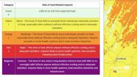 -Code Yellow/1=Minor impacts/Health risks to those people extremely sensitive to heat, especially those outside with little access to effective cooling or hydration