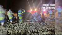 Photos from the Indian River Volunteer Fire Company show a car that went off the road and overturned. First responders worked to free a person from the vehicle.