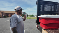 "Every time we drink a lot of water. They say you got to drink so much an hour, but we stop off, stop mowing, stop doing what we are doing, and take a water break, and take turns. That way, nothing happens to us, and we are safe," Burnett said.