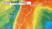 A graphic from Chief Meteorologist Paul Williams showing smoke over Delmarva on Wednesday at 7 a.m.