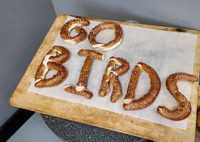 Once shaped and salted, the pretzels go into the oven at 500 degrees for six to eight minutes before they’re ready to go.