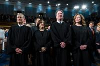 The only Supreme Court justices attending were Chief Justice John Roberts, as well as Justices Brett Kavanaugh, Amy Coney Barrett and Elena Kagan. Trump greeted them personally before the speech, despite last week slamming Coney Barrett — who he appointed to the high court in his first term — for siding with the majority against his tariffs.