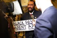 Democratic Rep. Al Green was escorted from the chamber early in the speech, after he unfurled a sign of protest that read “Black People Aren’t Apes!” That was an apparent reference to a racist video the president posted that depicted former President Barack Obama and First Lady Michelle Obama as primates in a jungle. Green was also removed during Trump's address last year.