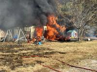 The call came in around 2:40 p.m. for a fire in the 17000 block of Davis Road. Georgetown Fire Chief Rogers reported an outbuilding was fully engulfed in flames, with the fire rapidly extending to surrounding woods and a car.