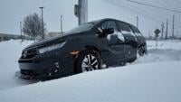 Drivers encountered treacherous conditions throughout the morning, with cars abandoned in deep snow and multiple trucks stuck along the highway. Numerous vehicles in ditches, and a stuck tractor-trailer caused traffic to back up near the Nassau Bridge during the Monday morning commute.