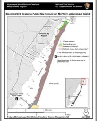 ASSATEAGUE ISLAND, Md. - Parts of Assateague Island National Seashore are now closed to visitors as part of the park's annual effort to protect nesting birds, including the federally threatened piping plover.