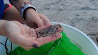 The clams start small, growing a foot by the second week and beginning to form their shells by the third week. At that stage, they are no bigger than a grain of sand. By six weeks, the clams are ready to be released into the bay.