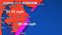 Winds this evening have already been gusting to as high as 45 mph at the Indian River Inlet. These winds will continue to pick up overnight. Wind gusts as high as 60 mph will be possible into early Saturday afternoon. Breezy conditions remain into Sunday morning. Inland areas of Delmarva will see gusts as high as 50 mph.