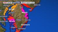 Coastal flooding is expected, especially in low-lying areas and those with poor drainage. Major flood levels are possible in bay communities. There is no full moon yet, so that will help with tides. The worst flooding will occur during the high tides Saturday morning and afternoon. Some flooding could linger into Sunday mornings high tide.