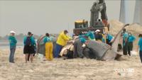 Thurman on Sunday detailed the next steps for handling the situation. "We are waiting for her. We hope to die naturally, of her own accord, and at that point, with the help of DNREC and their shoreline team, they will use their heavy equipment, and we can get her out of the water," she explained. "At that point, if she comes up near shore, we'll do a necropsy and try to find out more about what happened to her."