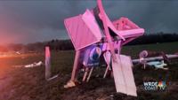 "There's some pretty heavy damage around us," he tells WRDE. "I feel like grateful that my parents weren't here and they only took as much as they did."