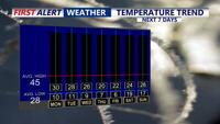 According to Coast TV’s First Alert Weather forecast, temperatures are expected to remain well below average for this time of year, with daytime highs projected to stay below freezing throughout the week.
