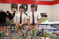 Upper School students Max Lev (Lewes, DE) and John Parker (Berlin, MD) work together to prepare food donations for local nonprofit organizations. (Worcester Prep)Â