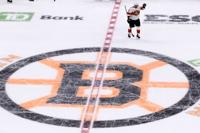 Florida Panthers left wing Brad Marchand (63), who played for more than 15 seasons with the Boston Bruins, acknowledges fans during a standing ovation during a break in the first period of an NHL hockey game, Tuesday, Oct. 21, 2025, in Boston. (AP Photo/Charles Krupa)