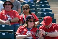 Los Angeles Angels fans wait in the stands prior to a spring training baseball game against the San Diego Padres Tuesday, March 10, 2026, in Tempe, Ariz. (AP Photo/Ross D. Franklin)