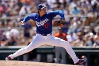 Los Angeles Dodgers starting pitcher Shohei Ohtani, of Japan, throws against the San Francisco Giants during the first inning of a spring training baseball game, Wednesday, March 18, 2026, in Phoenix. (AP Photo/Ross D. Franklin)