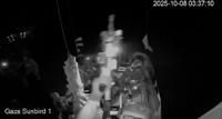 This image obtained from live stream footage from the Sumud Flotilla's Gaza Sunbird 1 vessel shows an Israeli soldier trying to destroy the camera onboard Gaza Sunbird 1 vessel, in Eastern Mediterranean sea, on Wednesday, Oct. 8, 2025. (Freedom Flotilla Coalition via AP)
